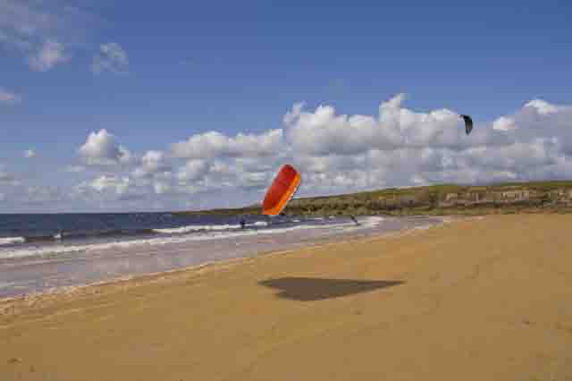 Der Zweite Spot war Lahinch. Lahinch ist eine Surferstadt und der vordere Bereich ist für die Wellenreiter reserviert. Nach fünf Minuten Fussweg teilt man sich aber einen Traumspot mit fünf anderen Kites.